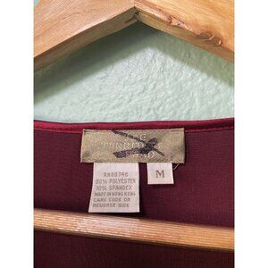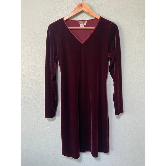Vintage The Territory Ahead Women's Red Maroon Velvet Long Sleeve Midi Dress Med