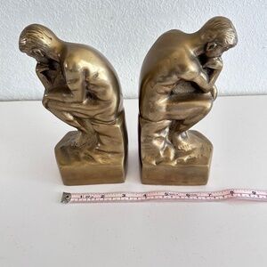 Vintage “The Thinker “ Statue Art Deco Bookends a Pair Heavy Solid Brass 7" inch