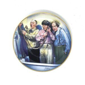 This set of 11 vintage collectible porcelain plates featuring The Three Stooges is a nostalgic treasure from the 90s. Made by Franklin Mint, these decorative plates are perfect for fans of the classic comedy trio. The high-quality porcelain material adds a touch of elegance to any collection, making them a must-have for collectors of memorabilia from the era. Display these plates in your home as a fun and quirky way to celebrate the antics of The Three Stooges.