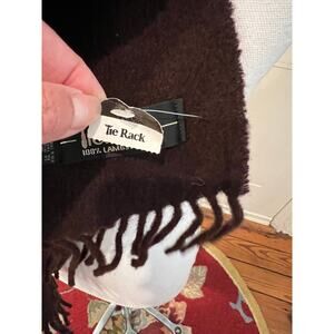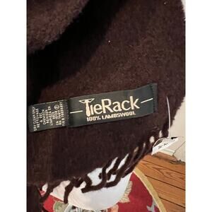 New Vintage The Tie Rack Lambswool Fringed Scarf Chocolate Brown. Super soft 100% lambswool. Could easily be unisex. Small hole noted - see pic