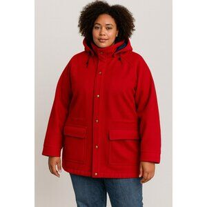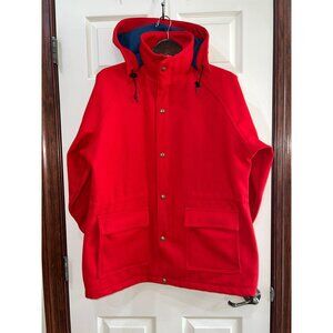 Vintage The Woolrich Woman Red Hooded Wool Blend Coat Size L Made In USA