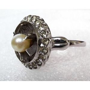 Vintage Theda Sterling Art Deco Pearl Ring Sz 6.5 Adj