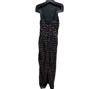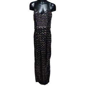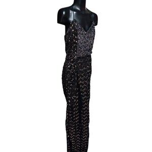 Vintage Themes ILGWU Black Sequin Gown XS 0-2 Sheath Peplum Formal Dress