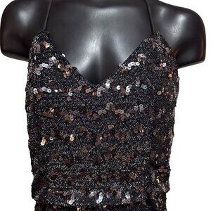 Condition: Vintage pre-owned with some loose sequin strands and minor boning repair needed on the front left (see last photo). May have a vintage scent and could benefit from refreshing.