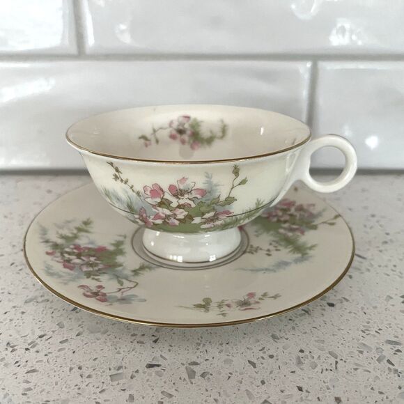 Vintage Theodore HAVILAND New York Apple Blossom Footed Tea Cup & Saucer Set