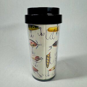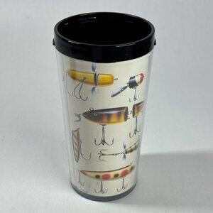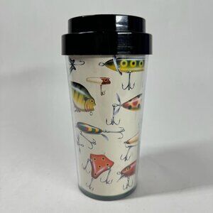Vintage Thermo-Serv Jon Q Wright Fishing Lures Hooks Travel Mug Cup Made in USA