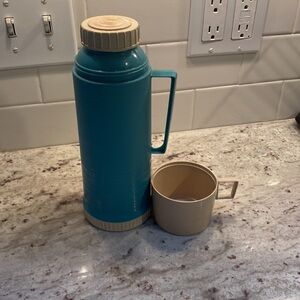 Vintage thermos. Thermos is 9” tall and pint size. Very good condition