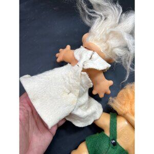 These vintage Thomas Dam troll dolls from the 1960s come with original clothes and distinctively styled hair. They make for a nostalgic collectible.