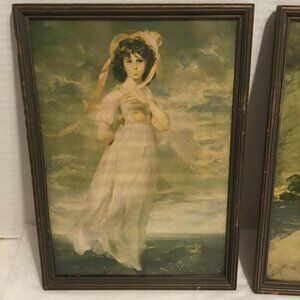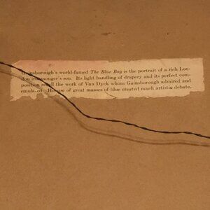 Vintage Thomas Gainsborough Pinky & Blueboy pictures framed behind glass, ready for hanging. Approximately 8-5/8 inches by 12 inches and in very good condition with minor wear overall. Each one has a description of the picture on the back and a label at the top that says Bear Book Co. Staunton & Waynesboro, Va. Thanks for looking and please feel free to make an offer on anything.