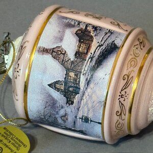 Vintage Thomas Kinkade Christmas Ornament Cottage Bradford Glass Porterfield Tag