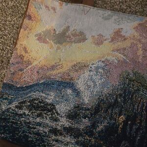 Vintage Thomas Kinkade Embroidered Tapestry Lighthouse Sunset Tote Shoulder Bag