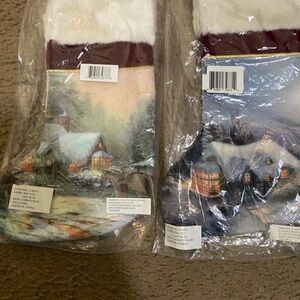 Vintage Thomas Kinkade Set Of 2 Silent Night and A Christmas Welcome Retro Holiday Festive Stockings