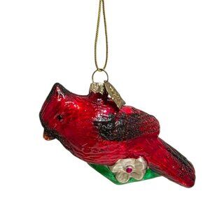 Vintage Thomas Pacconi Red Cardinal Glass Christmas Ornament Bird Floral Holiday