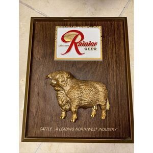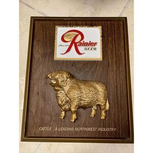 Vintage Thomas Schutz Rainier Beer 3D Cattle A Leading Northwest Industry Sign
