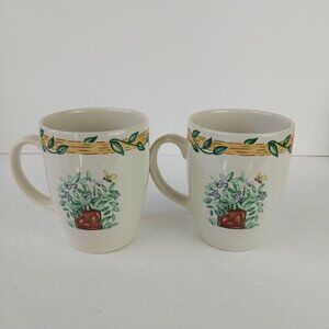 Vintage Thomson Pottery Birdhouse Vine Border Mugs