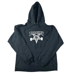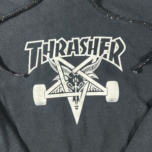 Vintage Thrasher Hoodie Mens Small Black Skateboard Magazine Pentagram Y2K