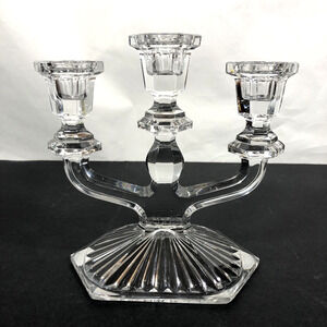 Vintage Three Arm Clear Glass Elegant Candelabra 7" Tall Retro Hollywood Glamour