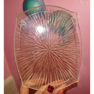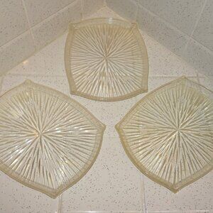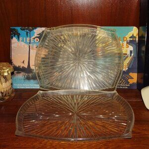 Vintage Three Clear Lucite Atomic Starburst Snack Trays trinket dish 1950s retro