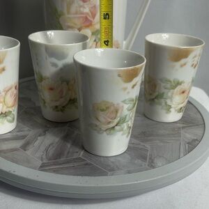 Vintage Three Crown China Rose Pitcher & 4 Cup Set Germany Gold Trim 1920's