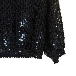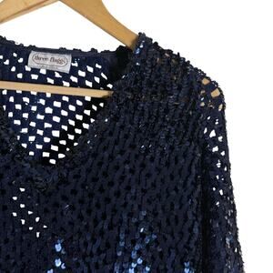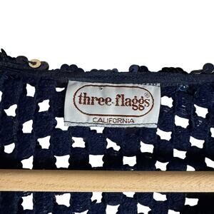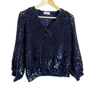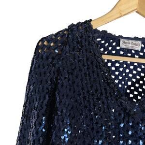 Vintage Three Flaggs Navy Sequin Embellished Crochet V-Neck Pullover Size Small