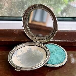 Vintage “Three Flowers” Metal Powder Compact Richard-Hudnut Mirror Case & Puff