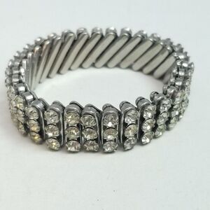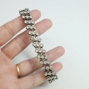 Vintage Three Row Rhinestone Stretch Bracelet Made in British Hong Kong, Estate
