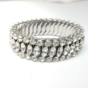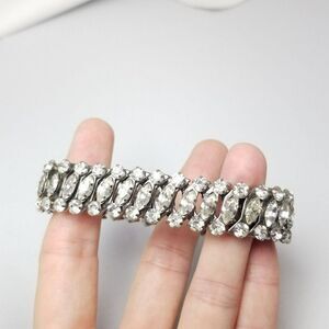 Vintage Three Row Rhinestone Expansion Bracelet, Marquise Shape, Estate