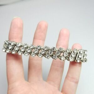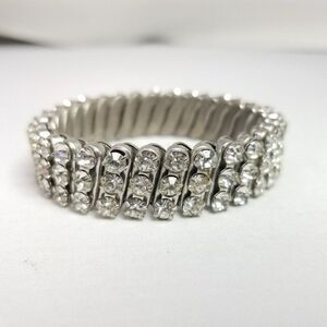 Vintage Three Row Rhinestone Expansion Stretch Bangle Bracelet British Hong Kong