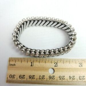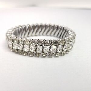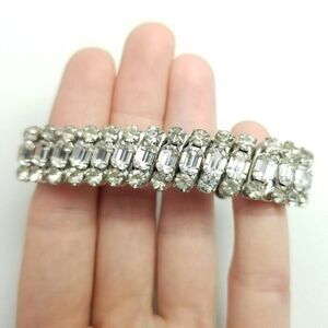 Vintage Three Row Rhinestone Stretch Expansion Bracelet, Emerald Shape Stones