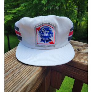 Vintage Three Stripe K-Products Pabst Blue Ribbon Snapback Hat Made in USA