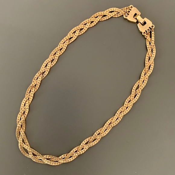 Vintage Three-Strand Braided Gold-Tone Choker Necklace