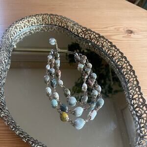 Vintage Three-Strand Natural Stone Beaded Necklace