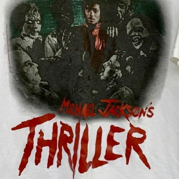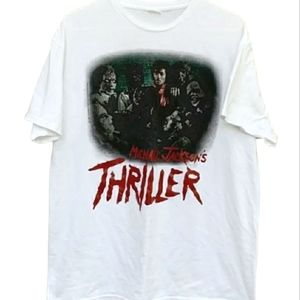 Vintage Thriller Michael Jackson White Graphic T-shirt 100% Cotton Size Medium