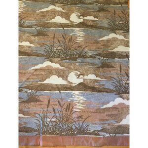 Vintage Throw Blanket Satin Edge Trim Nature Lake Pond Mountains Water Made USA