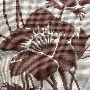 Vintage Throw Pillow Handmade Needlepoint Brown Beige Floral Boho Retro Decorati
