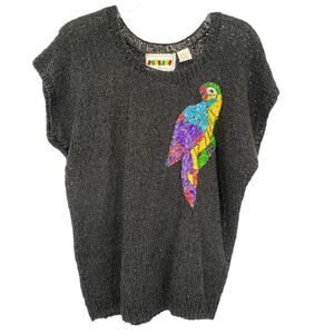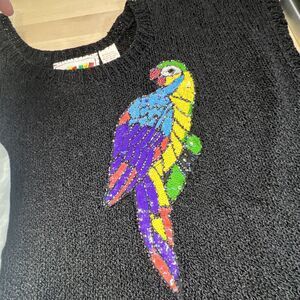 Vintage Thumsup Rayon Blend Black Sweater Sequin Parrot Medium