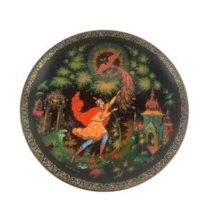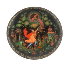 These exquisite collector plates from Tianex depict the enchanting scene of Tsarevich and the Firebird, evoking the rich folklore of Russian heritage. Each plate is adorned with intricate gold detailing around the edges, enhancing the vividness of the hand-painted illustrations. These plates serve as a beautiful display piece for any collector or lover of fine art.