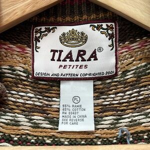 Vintage Tiara Cotton Zipper Mock Neck Sweater Cardigan Y2K Women’s Large Petite