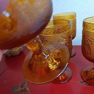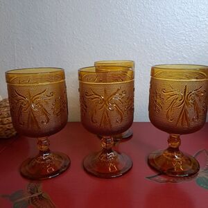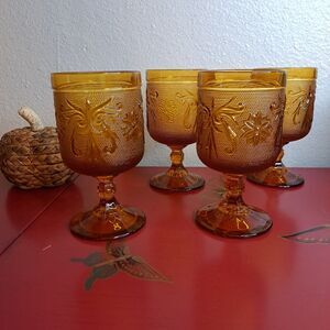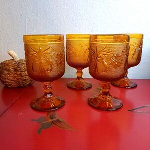 This a beautiful amber set of four Goblets Glasses by Vintage Tiara!