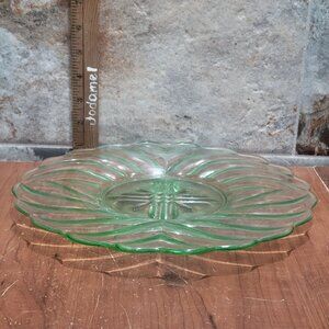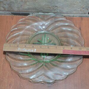 Vintage Tiara Exclusives Green Glass Serving Plate Ruffled Edges