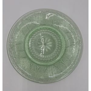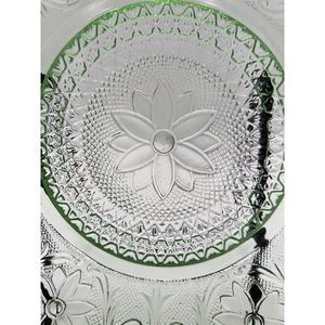 Vintage Tiara Glass Sandwich Pattern Chantilly Green Dinner Plates Set of 8 Indiana Glass 10 3/8"