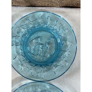 Vintage Tiara Indiana Glass Blue Child's Nursery Rhyme Plates Excellent Condition