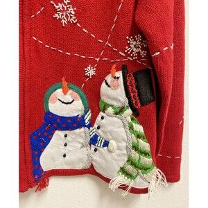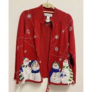 Vintage Tiara International Christmas Collection Snowman Cardigan Sweater Size M