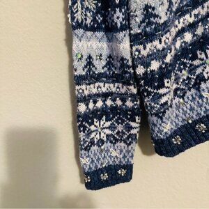 Vintage Tiara International Christmas Sweater Snowflake Embellished Blue Large