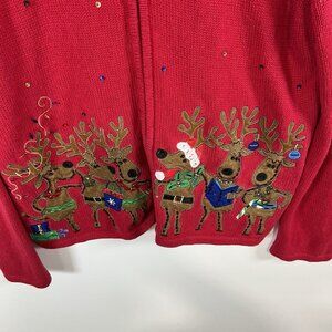 Vintage Tiara International Christmas reindeer full zip sweater woman's size XL