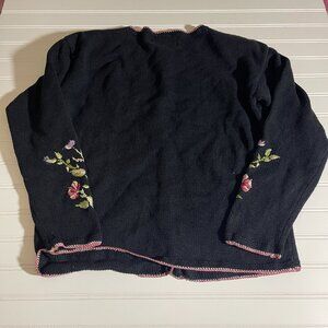 Vintage Tiara International Embroidered Cardigan Womens S Floral Black Cottage