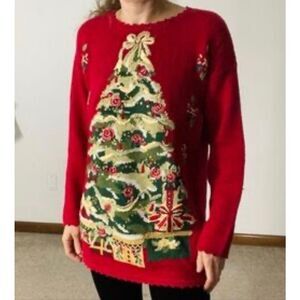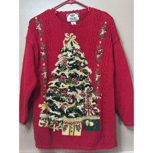 Vintage Tiara International Knitted Holiday Christmas Tree Red Women's Sweater L