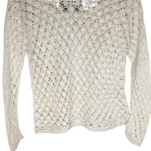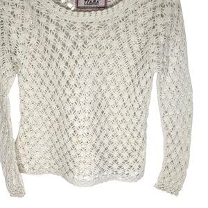 beachy, fisherman, feminine, dainty, Vintage Tiara International Sweater Womens Medium White Crochet Open Knit 2000s