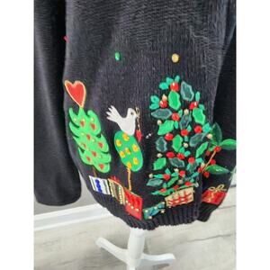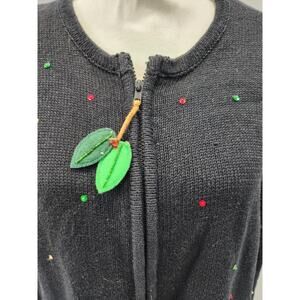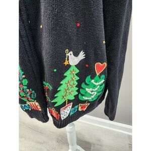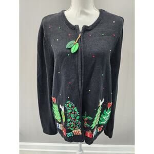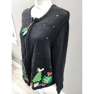 Vintage Tiara International zip Up Christmas Tree Sweater 3D Knit Black XL