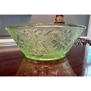 Vintage Tiara Sandwich Pattern Glass Chantilly Green 8.4” Vegetable Serving Bowl